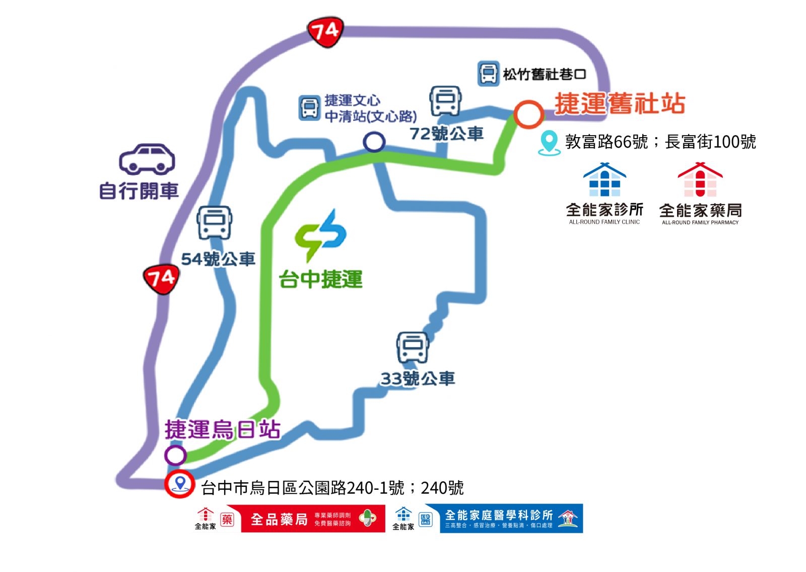 除了北屯據點外,我們在台中市烏日區公園路的「全能家庭醫學科診所」與「全品藥局」,自2020年成立至今,持續深耕在地,一路以來,我們持續秉持專業與溫暖的初衷,讓居民感受到貼近日常的健康守護。